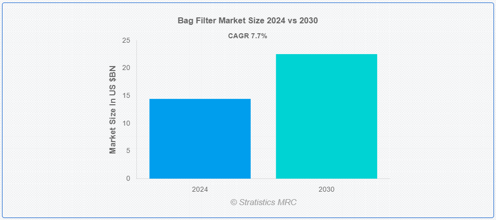 Stratistics MRC에 따르면 글로벌 백 필터 시장은 2024년 144억 5천만 달러 규모이며, 예측 기간 동안 7.7%의 연평균 성장률로 2030년에는 225억 6천만 달러에 달할 것으로 예상됩니다. 백 필터는 가스 또는 액체 스트림에서 입자를 제거하는 데 사용되는 여과 시스템입니다. 필터 매체 역할을 하는 일련의 패브릭 백으로 구성됩니다. 오염된 유체는 이 백을 통과하고 입자는 천의 표면이나 섬유 안에 갇히게 됩니다. 백 필터의 설계는 크고 작은 입자를 효율적으로 제거할 수 있어 대기 오염 제어, 수처리 및 산업 공정을 포함한 광범위한 응용 분야에 적합합니다.