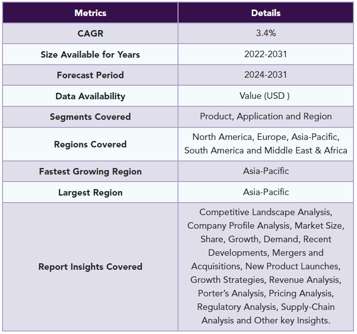 글로벌 가성 소다 시장 규모는 2022년에 450억 달러에 달했으며 2024-2031년 예측 기간 동안 3.4%의 CAGR로 성장하여 2031년에는 589억 달러에 달할 것으로 예상됩니다. 가성소다 또는 수산화나트륨(NaOH)은 화학 제조, 펄프 및 제지, 섬유, 수처리 등 다양한 산업에서 널리 사용됩니다.