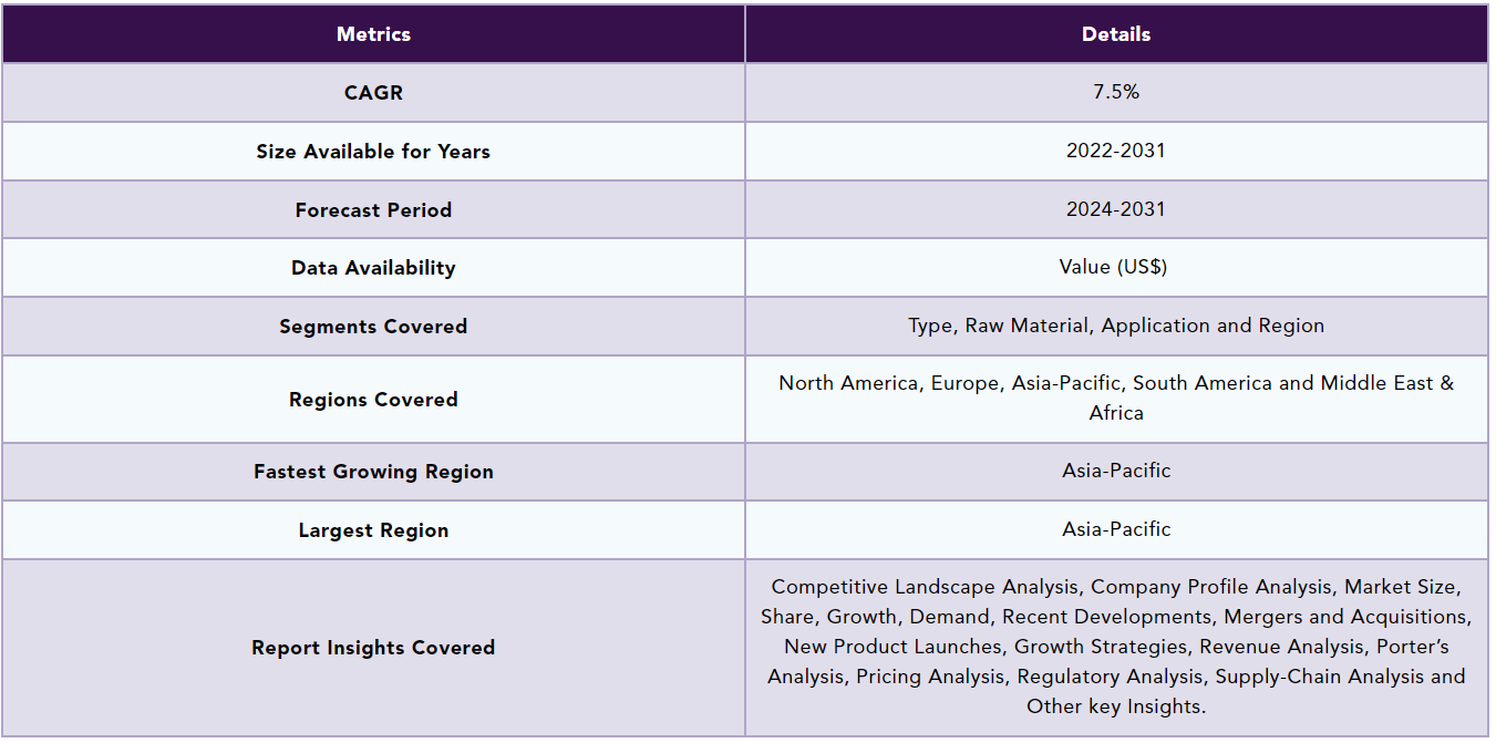 - 원료별 시장 규모 분석 및 전년 대비 성장률 분석(%)