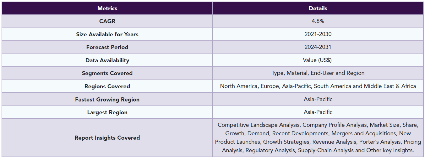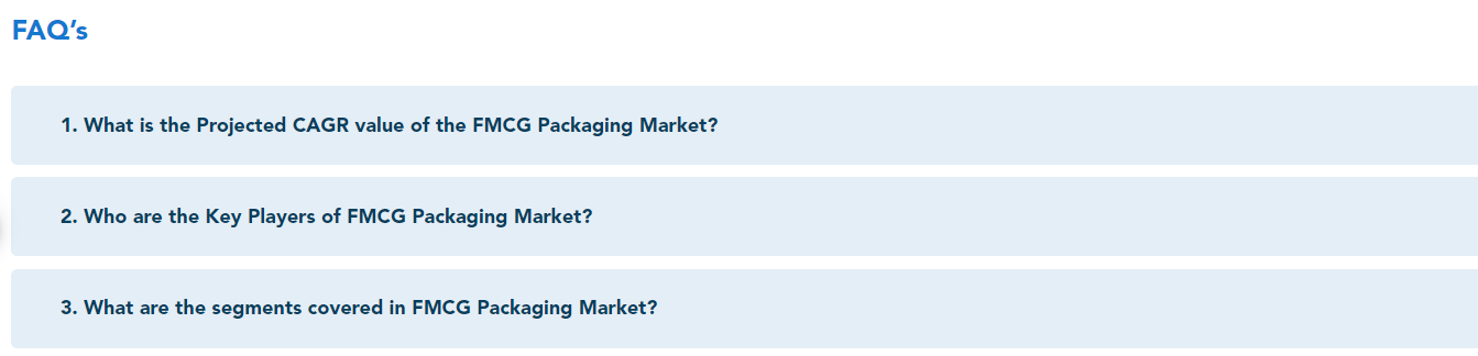 모든 세그먼트에 대한 FMCG 패키징 시장 수준의 수많은 데이터 포인트가 포함된 Excel 데이터 시트.
