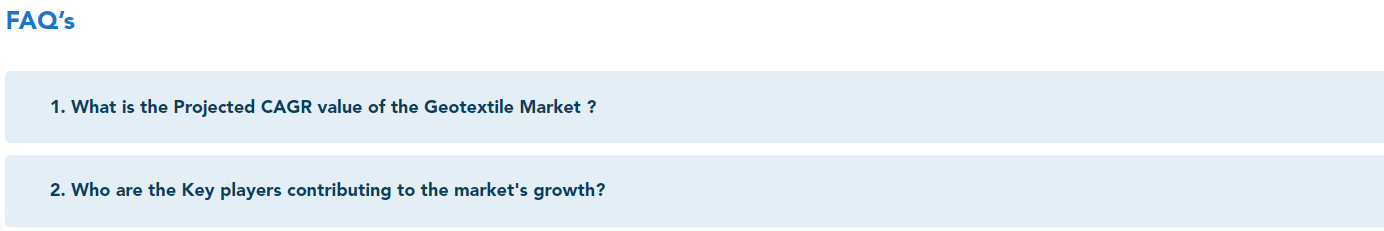 글로벌 지오텍스타일 시장은 2024~2031년 예측 기간 동안 6.0%의 연평균 성장률로 성장할 것으로 예상됩니다. 시장은 해양 및 유압, 환경 공학, 농업 공학 및 건설 등의 수요 증가로 인해 성장할 것으로 예상됩니다. 경쟁은 Huesker, Fibertex 부직포, Officine Maccaferri 등이 시장에서 운영하면서 경쟁이 심화되고 있습니다.