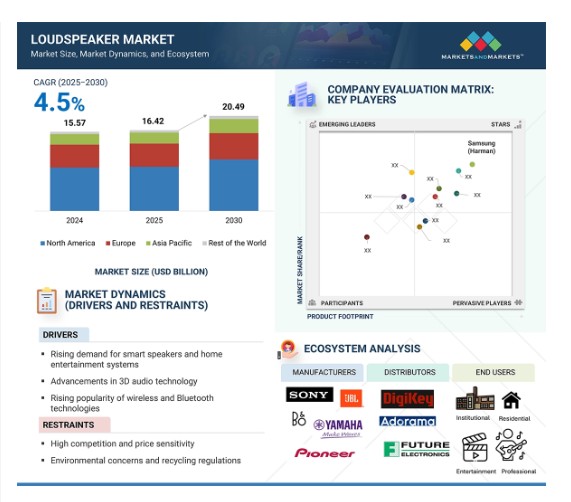 라우드스피커 시장은 보스 코퍼레이션(미국), 삼성(한국), 소니 그룹 코퍼레이션(일본), 파나소닉 코퍼레이션(일본), 야마하 코퍼레이션(일본) 등 주요 기업과 수많은 중소기업이 존재하는 통합된 시장이다.
