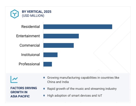 • 수직 시장별: 주거 부문, 특히 스마트 홈은 시장 수요에 대한 주요 기여자로 계속 자리매김하고 있으며, 소매점 및 카페와 같은 장소에서의 상업적 적용도 확대되고 있습니다.
