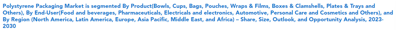 글로벌 폴리스티렌 포장 시장은 제품, 최종 사용자 및 지역에 따라 세분화됩니다.