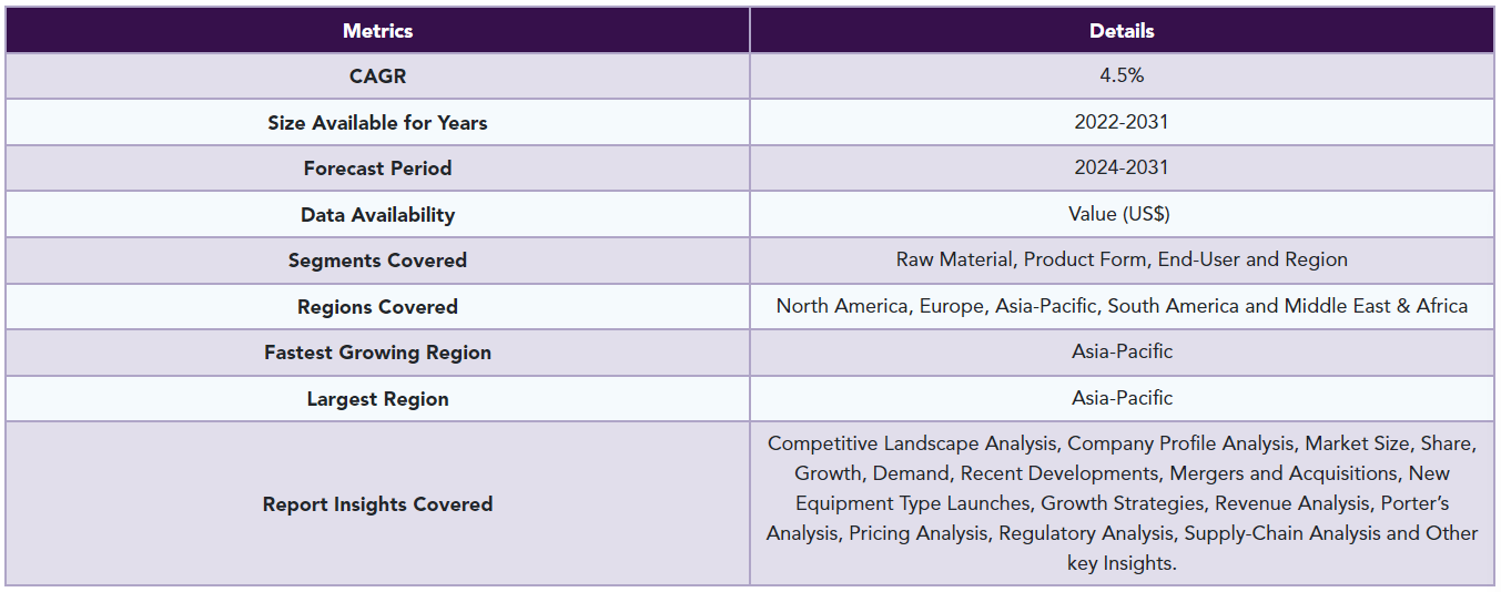 - 원재료별 시장 규모 분석 및 전년 대비 성장률 분석(%)