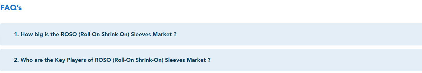 모든 세그먼트에 대한 ROSO(롤온 수축형) 슬리브 시장 수준의 수많은 데이터 포인트가 포함된 Excel 데이터 시트.