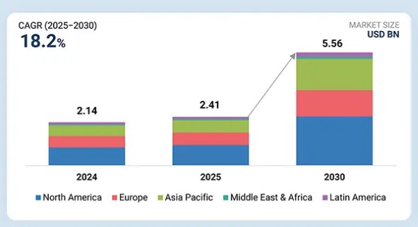 스마트 텍스타일 시장은 2025년 24억 1천만 달러에서 2030년까지 연평균 성장률(CAGR) 18.2%로 55억 6천만 달러 규모로 성장할 것으로 전망됩니다. 스마트 텍스타일 시장의 성장은 웨어러블 기술에 대한 수요 증가, 건강에 대한 인식 제고, 반응형 및 적응형 의류 솔루션에 대한 필요성에 의해 주도되고 있습니다. 의료, 군사, 스포츠, 패션과 같은 산업들은 실시간 모니터링, 성능 향상, 안전을 위해 스마트 직물에 적극적으로 투자하고 있습니다.