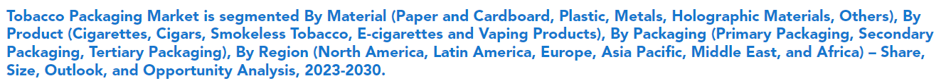 글로벌 담배 포장 시장은 재료, 제품, 포장 및 지역에 따라 세분화됩니다.